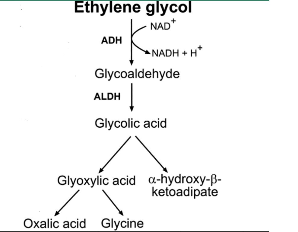 - 其中所產生的草酸鹽為最主要造成腎小管及性壞死的代謝物