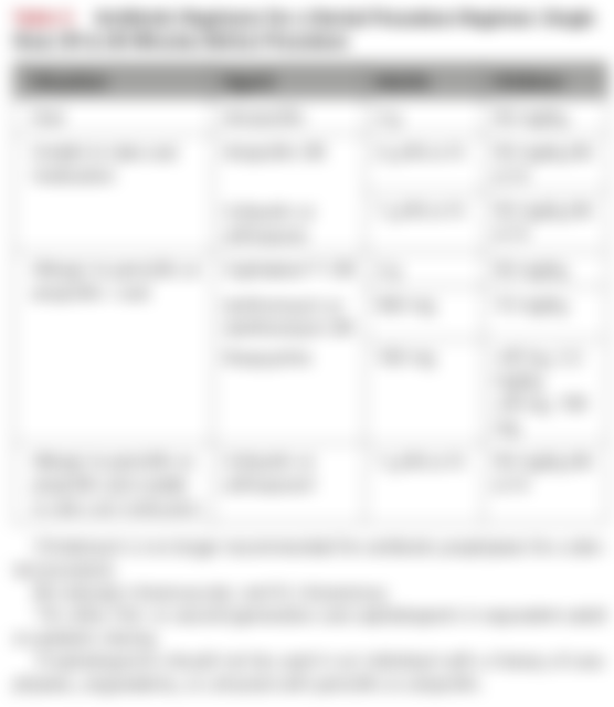 (D)對penicillin類的藥物沒有過敏現象,可在術前1小時給與針劑注射ampicillin 2 g