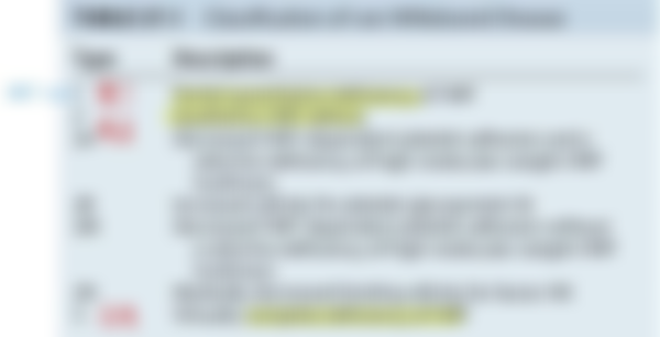 (B)通常第一型之VWD代表Von Willebrand factor在數量上之不足