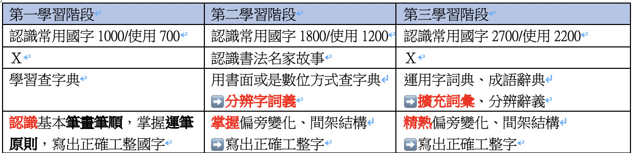 第一學習階段:認識常用國字至少 1000 字,使用 700 字。