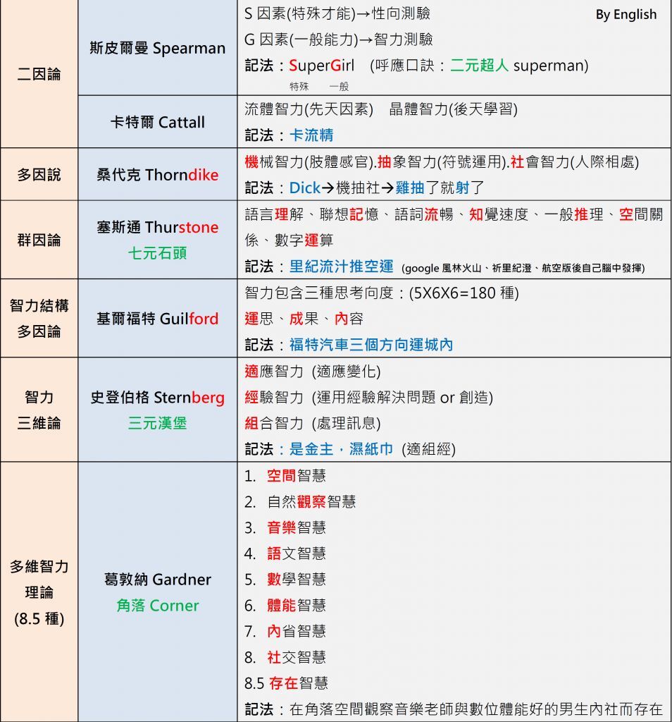 (A) 智力分為一般智力、廣泛智力和特殊性智力