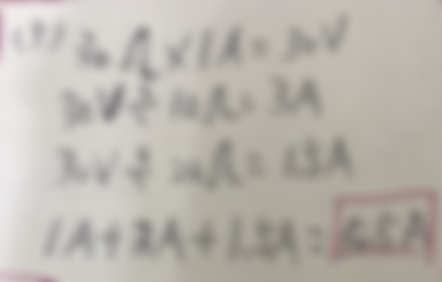 5 三個電阻並聯,其電阻值分別為10Ω,20Ω ,30Ω,若流經30Ω之 電流為 1 安培,其電路總電流應為?