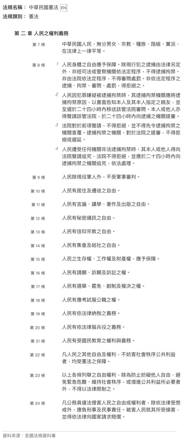 (C)人身:第8條