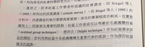 所以應該先和社區的意見領袖(最了解社區概況的一群人)請教,知道大概訊息之後才使用其他方式調查。