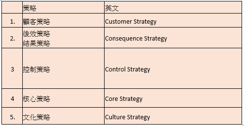 5、文化策略(The Culture Strategy):文化策略是五項策略中最隱晦難明的策略,然而也是政府再造策略中能否將成果持續的重要支點。