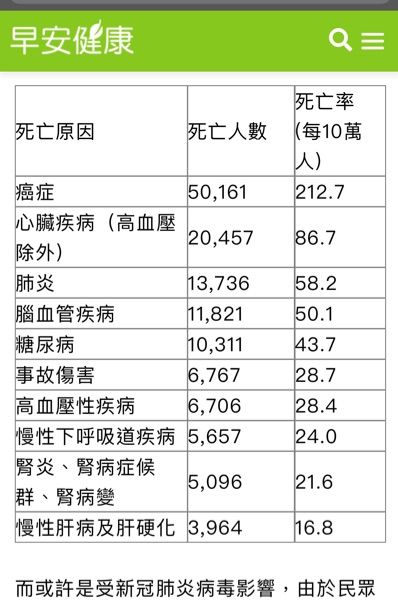 更新2020十大死因