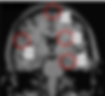 5.下圖為一頸痛患者之頸椎核磁共振影像,患者主訴為頸痛、下肢無力以及感覺異常,治療師發現有Babinski異 常現象,則下列何者為最可能之問題?