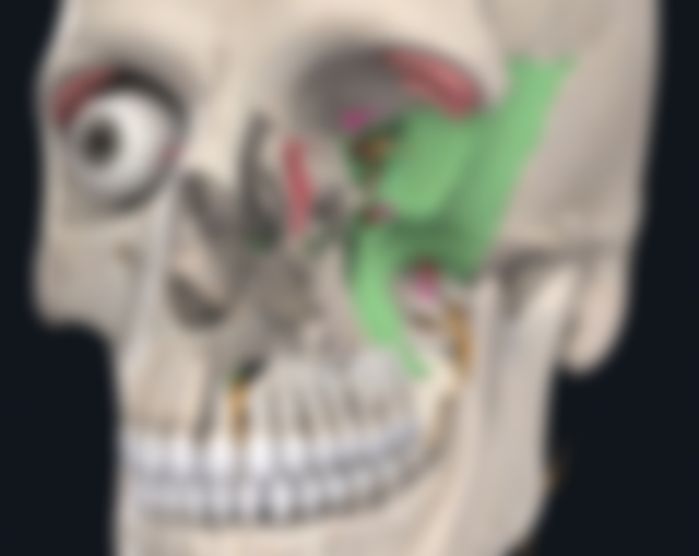 (D)眶下裂位於蝶骨大翼與上頷骨之間-下眼靜脈、顴神經、眶下神經通過