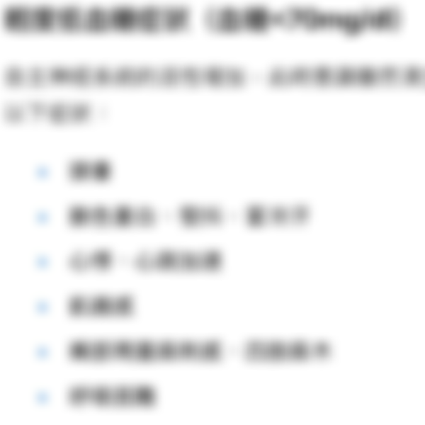 (B)輕度低血糖症狀為發冷、頭昏、心跳變慢、皮膚乾燥、臉色潮紅