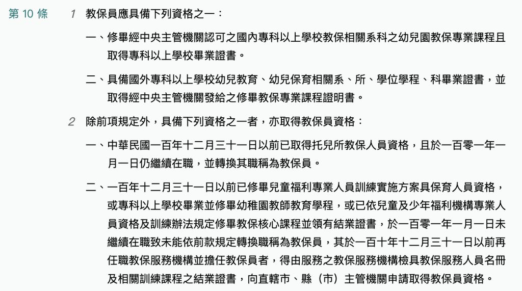 資料來源:教保服務人員條例(民國111年6月29日)修正公布。