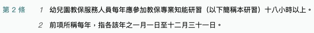 資料來源:幼兒園教保專業知能研習實施辦法(民國109年12月17日)修正公布