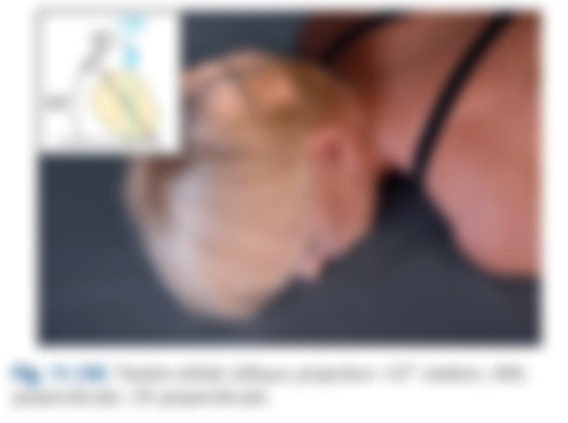 (C)拍攝 TMJ 時,X 光中心線向頭打 25~30 度,可避免雙側 TMJ 重疊