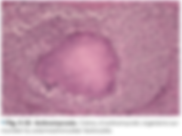 (A) 肌小球病(myospherulosis)------由脂質(可能是凡士林,抗生素,口內膏) 包裹 血球(黑色) 造成的組織切片,脂質來源常常是醫源性來源