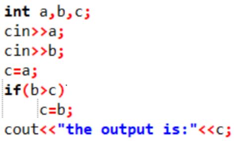 (A)輸入三個變數 (B)找出輸入數值最小值 (C)找出輸入數值最大值 (D)輸出結果為 the output is:c 。