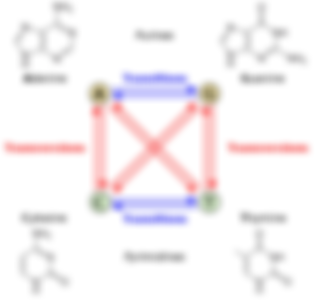 5. 在 DNA 階層的核苷酸取代突變,有關嘌呤類核苷酸取代嘧啶類核苷酸,下列何者最正確?