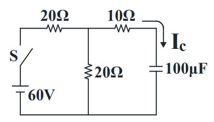 5. 如右圖所示之電路圖,當 S 閉合經 20 毫秒後,試求 IC 值為何?(A) 0 A (B) 1 A(C) 1.5 A (D) 3 A