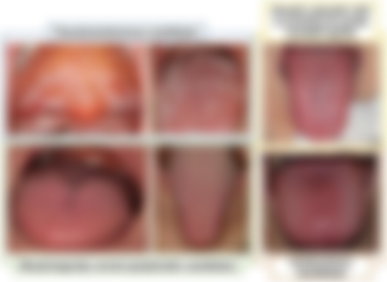 (C)紅斑(erythematous)型,常見於腭黏膜及舌背,呈現紅色