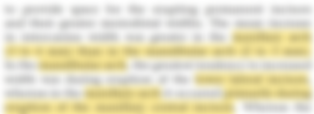 (C)犬齒間距離的擴大量,閉鎖牙弓(closed arch)較空隙牙弓(spaced arch)小