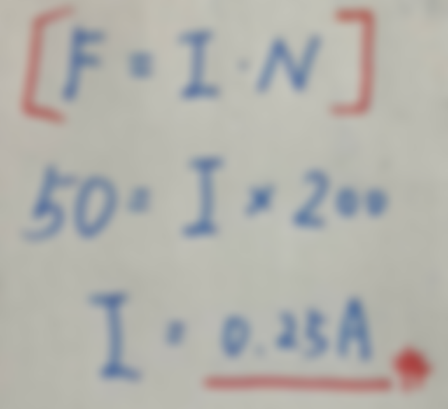 50. 某繞組匝數為200匝,欲產生50安匝的磁通勢,則須通以多大的電流?