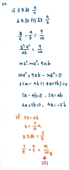 52. 有一個正分數與它的倒數之差為