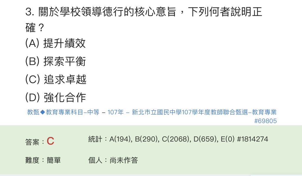 52. 請問下列何者最能表示學校領導德行的領導動機?