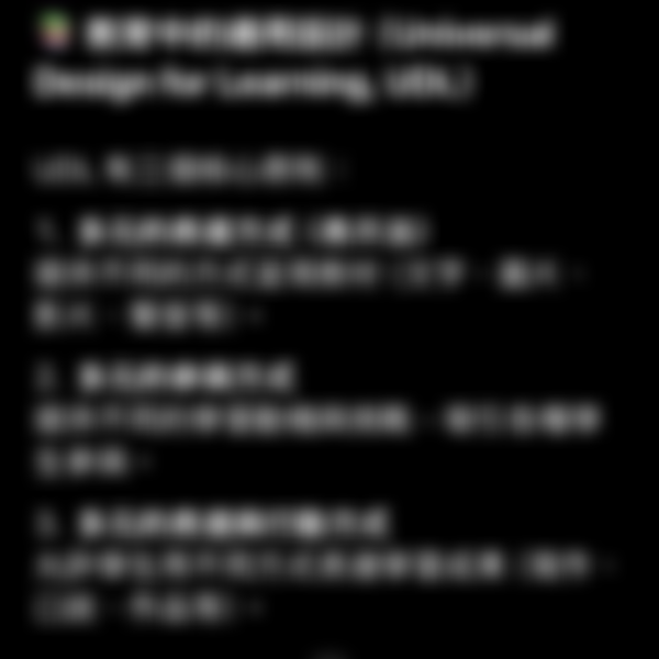 53. 隨著融合教育的發展,學前教師在課程活動設計時應考慮「通用設計學習」,以顧及所有 幼兒的學習需求,下列哪一項不屬於通用設計學習的原則?