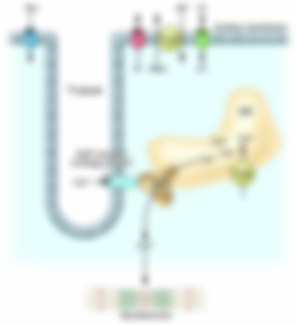 (A)為位於橫管膜(T tubule membrane)上的ligand-gated 鈣離子管道(Ca2+ channel)