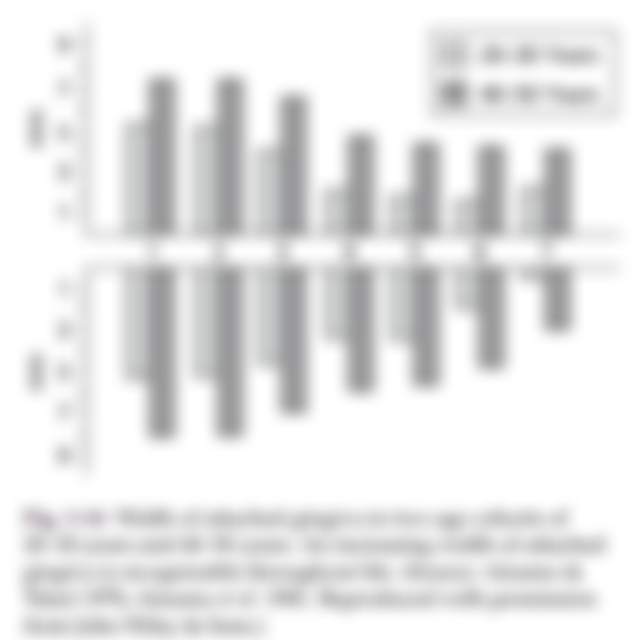 (D)附連牙齦寬度,隨著年齡增加而增加
