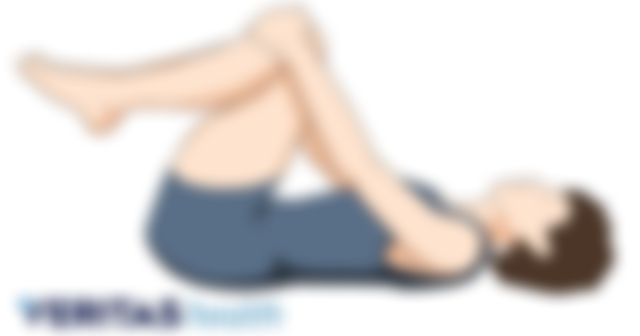 (B)仰臥,雙手抱住雙膝彎曲,靠向胸腹部,做腰椎屈曲