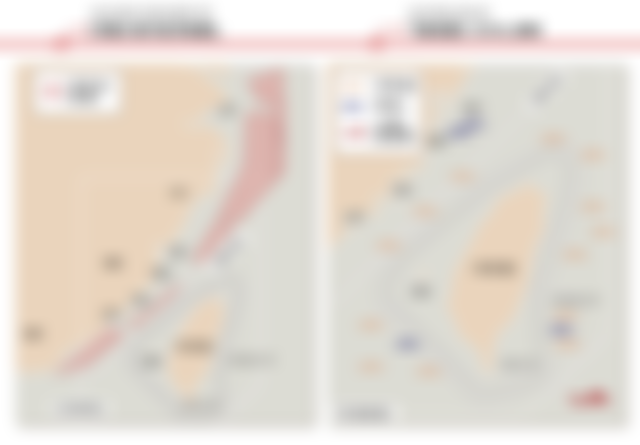 55.以下四張圖為近 2 年共軍在我周邊進行軍演概況圖,何者為「聯合利劍-2024B」軍 演概況圖?