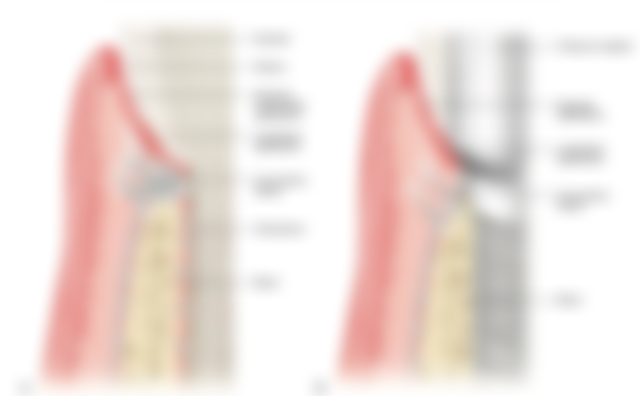 55.健康狀態下,下列植體結締組織附著(connective tissue attachment)組成,何者較自然牙多?