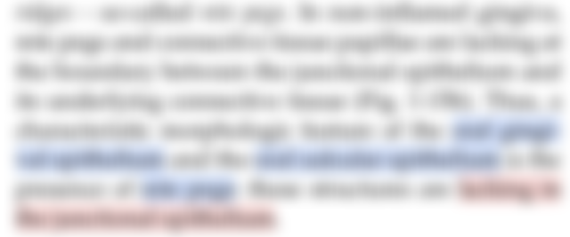 (B)健康的牙齦溝上皮是含有網錐(rete pegs)的非角化複層麟狀上皮