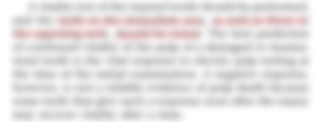 (B)若電髓測試數值比對照正常牙為高,此牙之牙髓可能正在進行退化性變化(degenerative change)