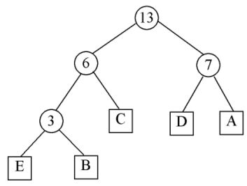 56. 下圖為一延伸二元樹(Extended Binary Tree),其中圓形節點表內節點(Internal Node),方形節點代表外節點(External Node),其外路徑長(External Path Length) 是多少?