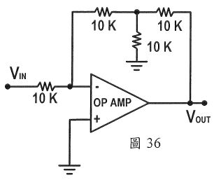 56. 如圖36輸入電壓 =+2 V,計算 OP放大器電路之輸出=?