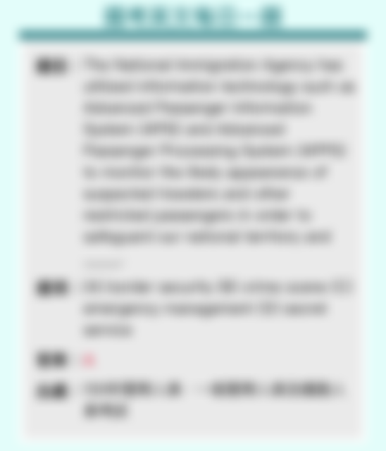 57 The National Immigration Agency has utilized information technology such as Advanced Passenger Information System (APIS) and Advanced Passenger Processing System (APPS) to monitor the likely appearance of suspected travelers and other restricted passengers in order to safeguard our national territory and .