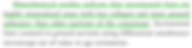 (D)增生線(incremental lines) 顯示時段性之牙骨質生成,且高度礦化(highly mineralized)