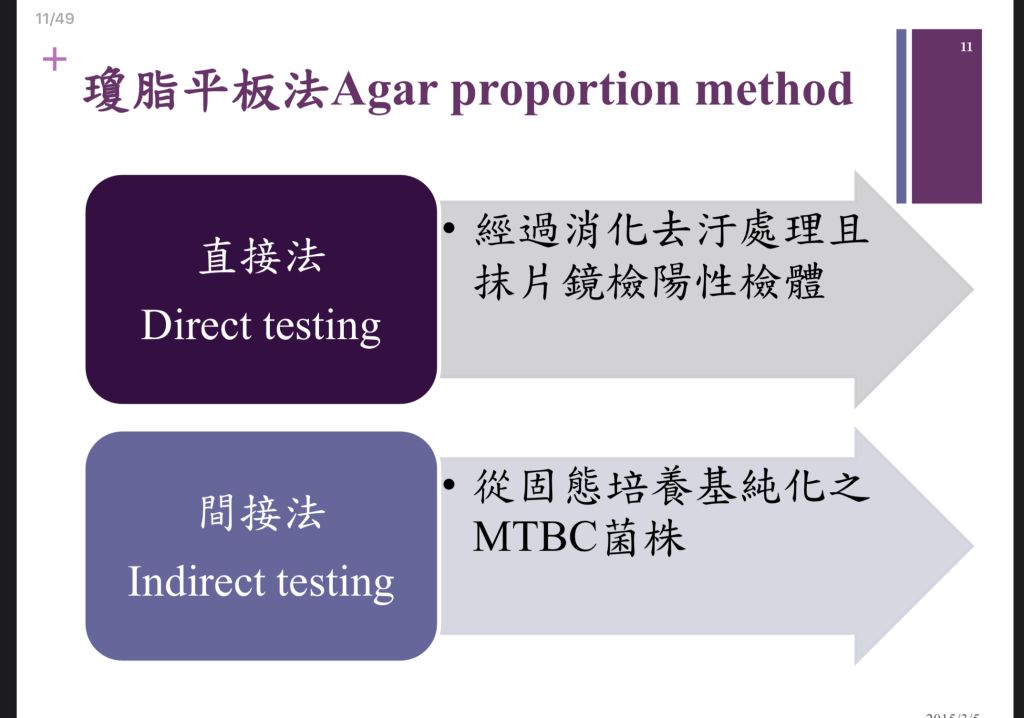 58.有關肺結核桿菌直接及間接法藥敏試驗之比較,下列敘述何者正確?