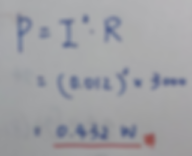 6 一個 3 千歐姆電阻器,流過的電流為 0.012 安培,此電阻器所消耗之功率為何?