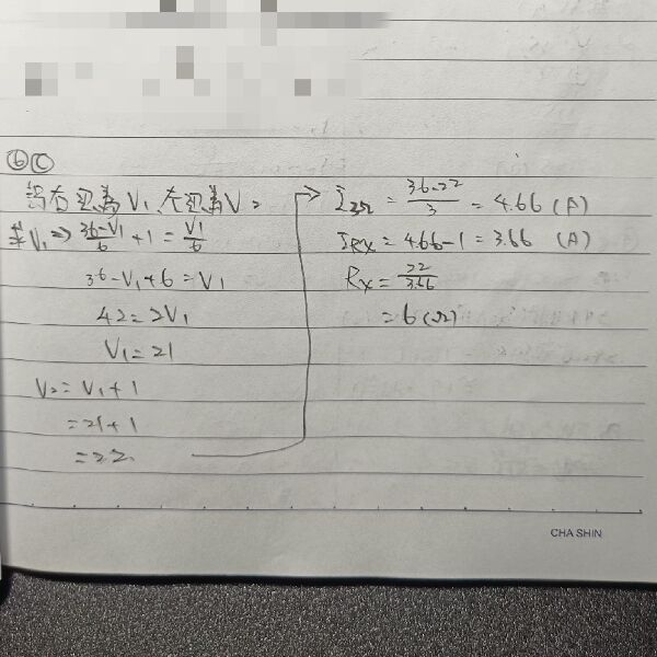 這題跟某一題以前的題目一模一樣,如過考試真的遇到沒做過類似的題目,建議直接代答案做戴維寧,解2個未知數太花時間 考試才1小時。