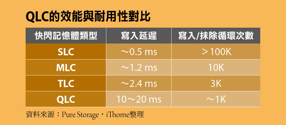 6 固態硬碟(SSD)的儲存媒介早期主要是單階單元(Single-Level Cell, SLC)反及閘快閃記憶體,近年來則