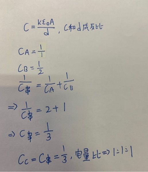 補充 :電容串連 電量都會一樣所以 A:B 一定是 1:1 選項就剩(A)(D)