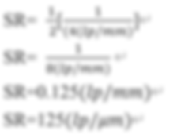 6.一數位影像系統的空間解析度為4 line pairs/mm,則此系統可分辨的最小物體尺寸為多少µm?