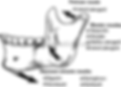 外翼肌(Lateral pterygoid muscle)、二腹肌(Digastric muscle)、頦舌骨肌(Geniohyoid muscle)、下顎舌骨肌(Mylohyoid muscle)