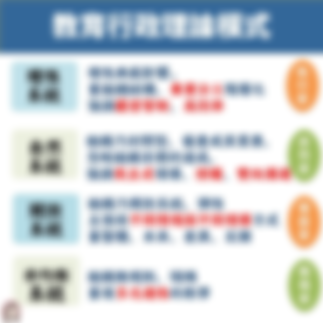 教育組織應訂有明確的目標,成員應依其角色確實執行業務並創造高效率。