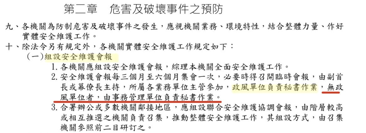 6.依據安全管理手冊規定,各機關應組設安全維護會報,請問有關安全維護會報之秘書作業應由何單位負責之敘述,