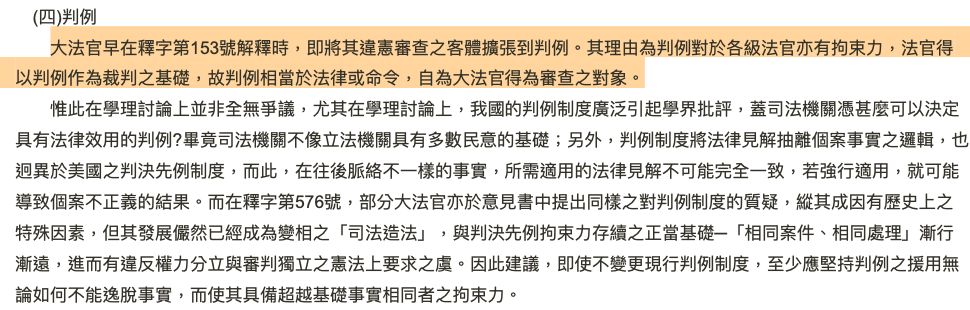 (C)大法官違憲審查之標的,包含判例 (釋字153.576提及)
