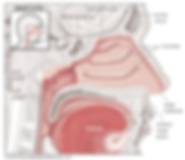 (D)軟腭中間游離端延伸至懸壅垂,仍然為典型的口腔複層鱗狀上皮所覆蓋