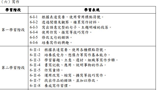 6. 寫作是重要的語文素養表徵,課綱規畫五個學習階段,逐步發展學生序列
