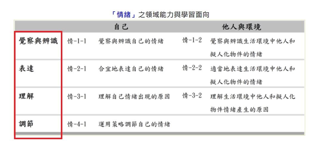 6. 根據「幼兒園教保活動課程大綱」,目前在幼兒園引導幼兒學習情緒能力時,共有以下4個 重點能力,可供參考: 下列敘述最佳答案的組合為何? 甲、學會「覺察與辨識」自己、他人和擬人化物件的情緒 乙、能合宜地以語言或非語言「表達」自己、他人和擬人化物件的情緒 丙、能「理解」自己、他人和擬人化物件情緒產生的原因 丁、運用策略「調節」自己的情緒